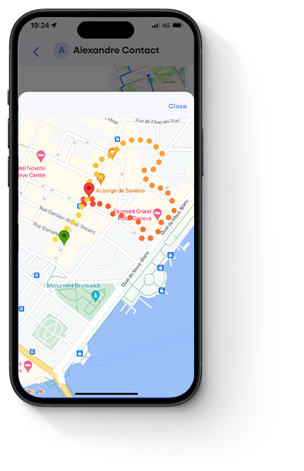 The app immediately shares your realtime location for 48 hours, drawing a map of your journey from the moment you press the button.